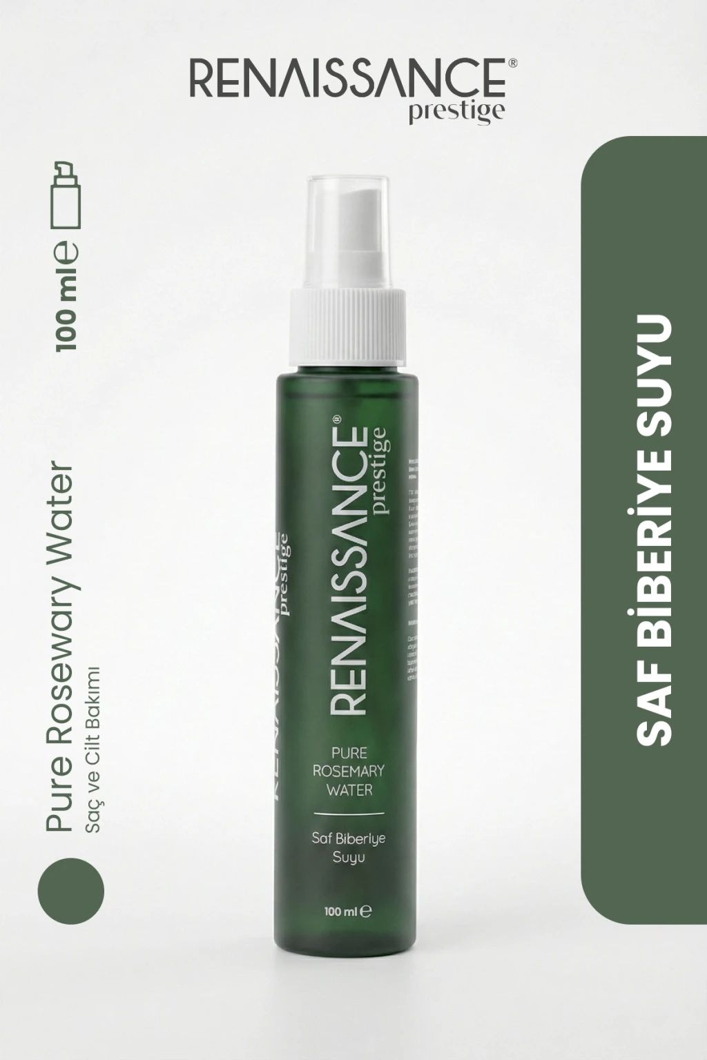 Renaissance Prestige Saf Biberiye Suyu Saç Toniği, su buharı distilasyonu yöntemiyle elde edilmiş %100 saf biberiye suyundan üretilmiştir. Katkı maddesi içermeyen doğal formülü sayesinde saç derisini nazikçe temizler, saç köklerini besler ve saç tellerinin güçlenmesine yardımcı olur.